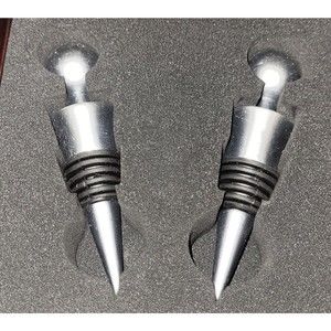Jennifer Garant Scottish golfer in kilt wooden box with 2 wine/booze bottle stoppers. It does come in the box and the box is worn, but the item itself is great. Box: 5.5" x 2.75" Stoppers: 1" x 3.75