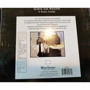 Wine Things Glass Go Round 4-Glass Decorative Caddy, Gold Goes over the Wine Bot