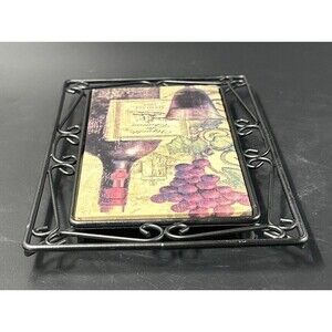 Add a touch of elegance to your home decor with these two exquisite wine-themed wall hangings. The rectangular-shaped black iron trim perfectly complements the beautiful ceramic tiles featuring French and Merlot wines. Perfect for wine enthusiasts, these wall hangings will add a touch of sophistication to your home while showcasing your passion for wine. Sawtooth hangers on back of hangings.