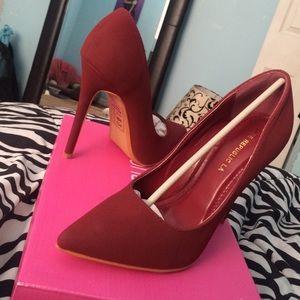 Wine colored high heel pumps 👠 Never before worn! Size 7! Too small for me and they may run small or narrow at the toe! 🚫 NO TRADES 🚫 Serious inquiries ONLY! Only taking best offer! Box included in perfect condition!
