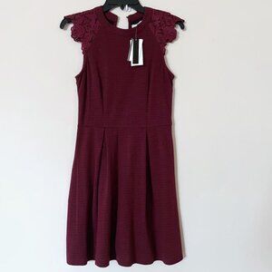 Burgundy sleeveless a line dress either lace sleeves