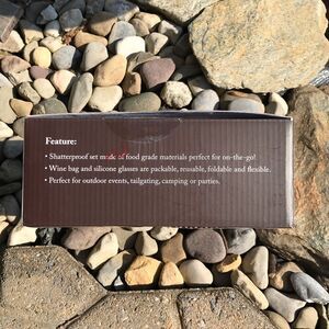 Avery Barn Wine Bag and 4 silicone glasses. Shatterproof set made of food grade materials perfect for on the go. Wine bag and silicone glasses are packable, reusable, foldable and flexible. Perfect for outdoor events, tailgating, camping or parties