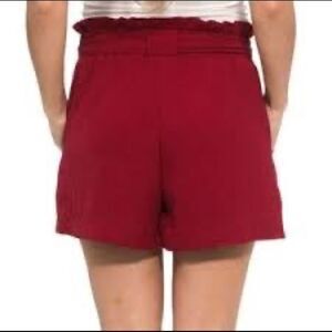 NWT Wine Colored High Waisted Paper Bag Shorts. Roughly 14” flat measure waist, unstretched; 16” long, 3” inseam. 2 spots near front right pocket, please see pictures. Bin C