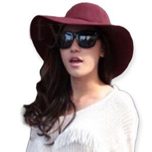 Wine Red Wide Brim Floppy Round Crown Hat NEW