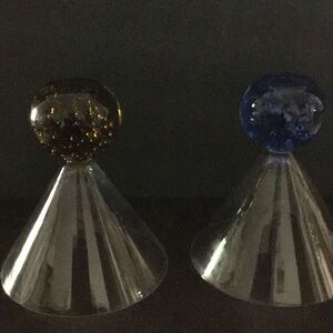 Wine glass handblown bubble bottom Set of 2 one blue one in Amber