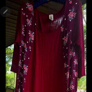 Wing Dressed in mauve w/floral design. Long style. 3/4 sleeves. Round neckline. Size L. $20 obo