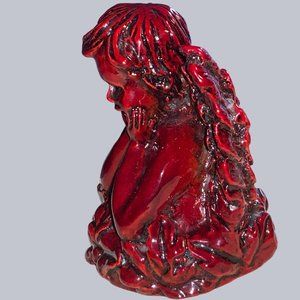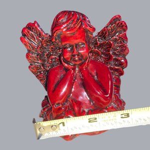 Winged Angel Cherub Shiny Carved Resin Dark Red Color Figurine 4"