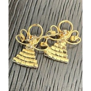 Winged Angels Clear Rhinestone Gold Tone Christmas Brooch Pin.
