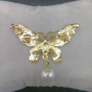 Winged Butterfly Brooch Pendant Combo NEW Pin Green Cream Enamel Faux Pearl Drop