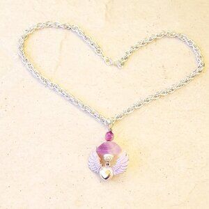 Winged Heart Amethyst Necklace ~ Hand Painted, One-of-a-Kind, Spiritual Gift