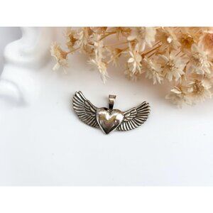 Winged Heart Shaped Hand Carved Little Charm Sterling Silver 925 Vintage Pendant