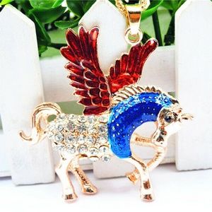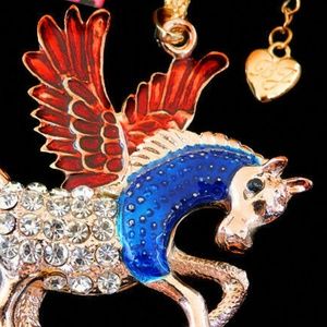 Winged Pegasus Red, Blue,Clear Rhinestone Necklace - Betsey Johnson