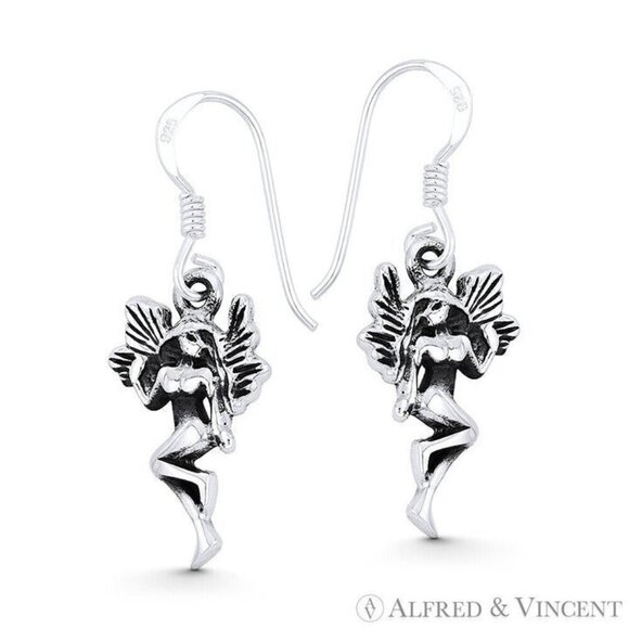 Winged Pixie / Fairy / Nymph Earrings in Oxidized .925 Sterling Silver