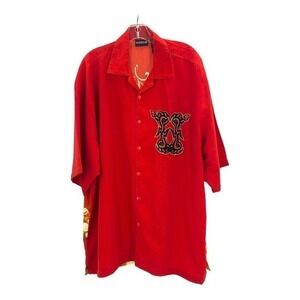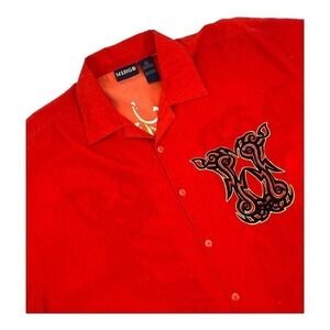 Wingo 2X Dragon Back Graphic Red Polyester Short Sleeve Men’s Button Shirt
