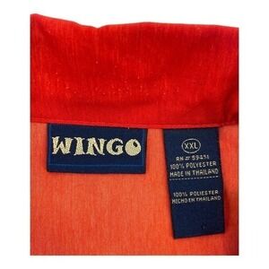 This Wingo men's button-up shirt features a striking dragon graphic on the back, in a bold red color. The shirt has short sleeves, a collared neckline, and a relaxed fit for a comfortable wear. It is made of polyester material and features a button closure.