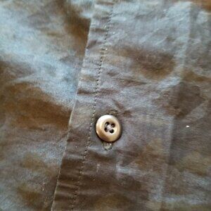 Classic and casual short sleeves shirt with two chest pockets with flap and buttons. Collared in button down front closure. Solid black fabric, breathable made from 100% cotton material. Extra button found on tag.