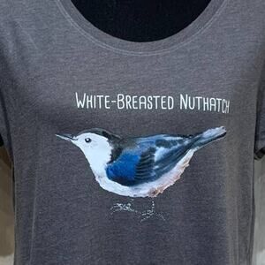 Wingspan Inspired Womens XL Watercolor White Breasted Nuthatch Upcycled Tee