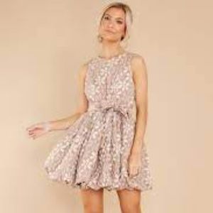 Over here! Could you send us a Wink And A Smile for the camera? We must get all the shots we can of you in that stunning beige dress...and there she goes, off to somewhere glamorous, for sure. Dress features a bubble hem, waist tie in the front and functional pockets.