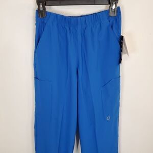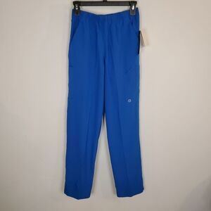 When your day revolves around caring for patients, you rely on comfortable scrubs that help you do your job. These unisex cargo pants have pockets that keep all your essentials close at hand, including front slash pockets and side cargo compartments — one of them with a scissor slot. The back patch pocket has a slot for a pen so you're never without one when you need to jot notes in a hurry. Soft fabric with four-way stretch lets you move easily, and the straight-leg design ensures that nothing gets in the way when you're on the go from the exam room to the nurses' station to the supply closet. An elastic waist with a drawcord helps the pants stay put when you reach for the highest shelf and crouch to reassure the smallest patients.