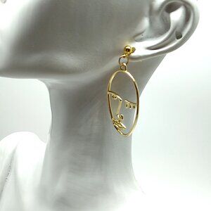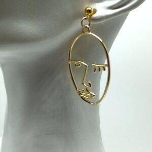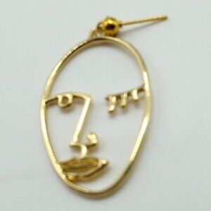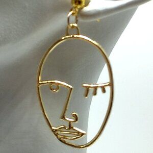 Winking Face Dangle Earrings Gold-tone NWOT