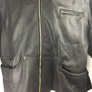 Authentic Winlit 1969, Size Large, Black Leather Bomber Zip Up Jacket, Heavy Leather, Oversized Relaxed Fit, Sleeve & Side Zippers, 4 Exterior Pockets, 1 Interior Pocket, Fully Lined Plaid Acrylic,, Zippered Cuffs, Vented Underarms, All Fasteners in Good Working Order,