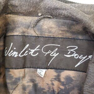 Winlit Fly Boys L Brown Bomber Jacket Coat Pockets Leather Patches Distressed