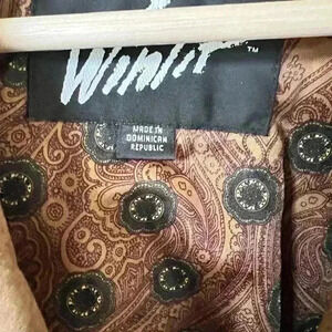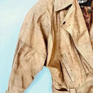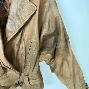 Winlit Leather Belted VTG Jacket with Shoulder Pads in a size M. In excellent. “Like new” condition. Has different color tones but are not flaws. One pocket has a hole in the lining. Gives Saint Laurent vibes.