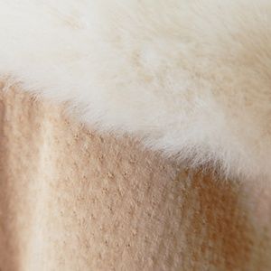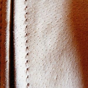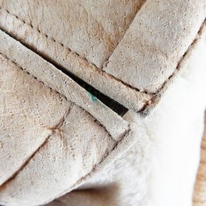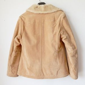 Beige / camel suede winter jacket by Winlit. It's real leather and very soft faux fur around the collar as well as the lining including the sleeves. In very good condition, but there are a few minor spots if you look closely especially in the zipper area and around the bottom hem (see last three pictures).