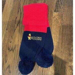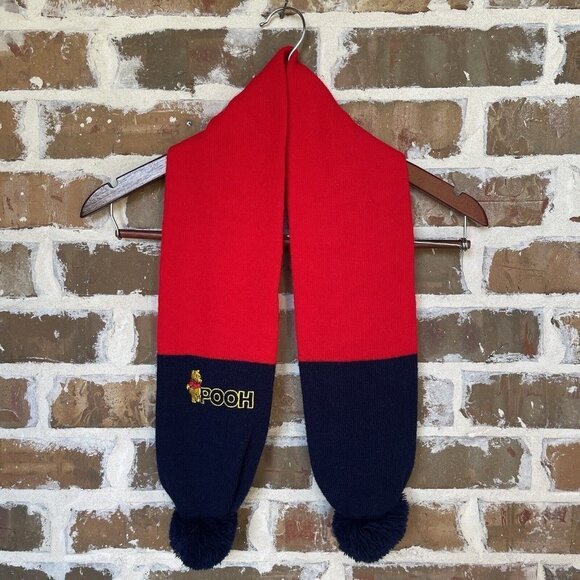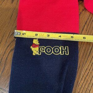 This Winnie the Pooh scarf is red, yellow and blue colors with embroidery with Pooh bear. Good option to keep warm during the cold winter months with style. This scarf measures 43" in length and is in Excellent pre owned clean condition, no stains, holes, or odor issues, it looks like it maybe was used once and is excellent quality construction. Please review the pictures for more details and size measurement information, thank you.