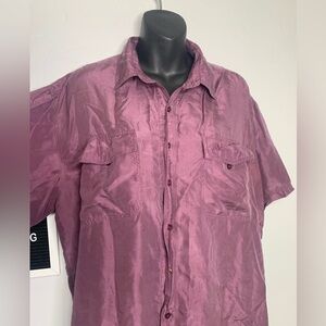 Winner 80s Silk Sueded Purple Boxy Short Sleeve Button Up Men’s Shirt Size Large
