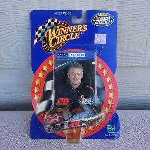 Winners Circle Hasbro Nascar 2000 Car Dale Jarrett Ricky Rudd Racing Set. The cars and cards are new in the package, but the packages are not pristine. The boards have bends, and the edges are worn as shown. Make nice toys if nothing else. Smoke-free.