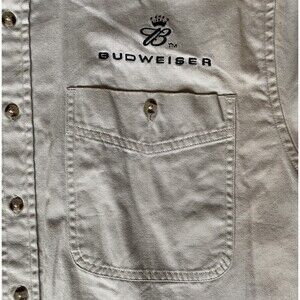 Winners Circle Mens L Dale Earnhardt Jr #8 Button Up Shop Short Sleeve Shirt Tan Budweiser Bud Racing