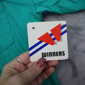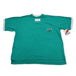Winners Shirt Mens M Bluish Green Short Sleeve Crew Neck Side Slit Pullover Tee