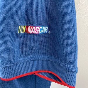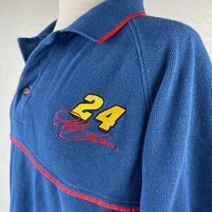Heavy knit polo shirt featuring Jeff Gordon on the chest. It measures 25 inches armpit to armpit lying flat and is 28 inches in length from shoulder to hem.