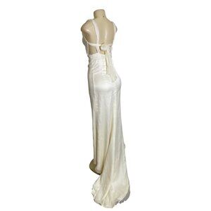 Winnie Couture Elegant White Sleeveless Draped Evening Gown With Train Sz 6