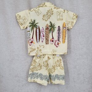Winnie Fashion Vintage Hawaiian Shirt Board Shorts Surfboard Print Matching Set
