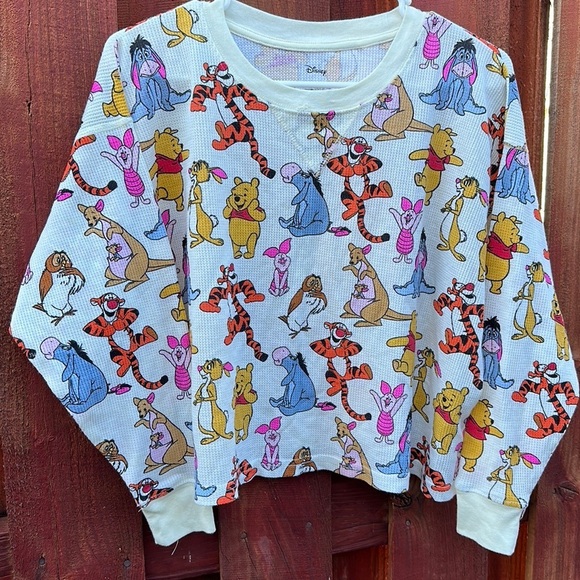 Winnie The Pooh Disney Oversized Crop Long Sleeve Top Size XS