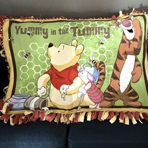 Winnie The Pooh Fleece Hand Made Tie Knot Throw Yummy in the Tummy 36" x 50"