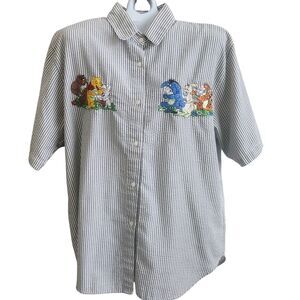 Winnie The Pooh Seersucker Embroidered Camp Shirt-Grandmacore-Gray/White-Loose L
