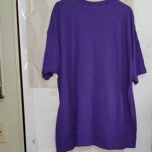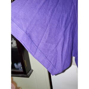 This piece is in excellent condition. 100% cotton, purple background with large Winnie on the front. Underneath Winnie it says "Proud to be Cuddly". Feels like Jersey knit tee-shirt material. 28" from armpit to armpit and 32" from shoulder to hem.