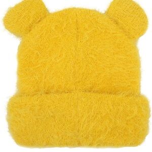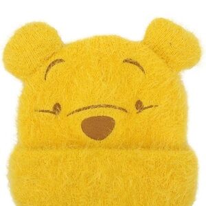 Disney winter hat Bioworld Winnie The Pooh Character Face Yellow Fuzzy Yarn Cuff Beanie with 3D Ears