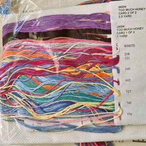 17" x 11" adorable counted cross stitch Kit,,"Too much Honey Sampler "by Lesiure Arts. This kit features 14 count white Aida fabric, gorgeous floss, needle and instructions. The design features the Pooh Characters trying to get Pooh free from the Honey and includes the alphabet and numbers . Would make a wonderful addition to a nursery or child's room.