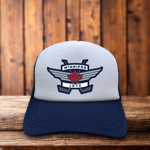 Winnipeg Jets Mens Trucker Hat Navy Snapback Wings Retro Logo Hockey Cap