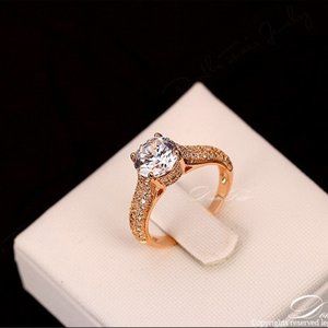 Winona Engagement Ring - 18K Rose Gold Plated - Pave CZ- Crown Setting