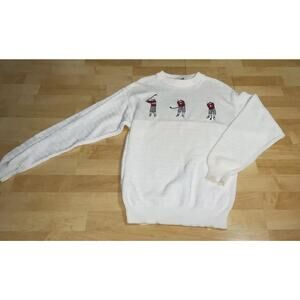 Winona Knits Golf Sweater Men’s Medium Ivory Pullover Embroidered 100% Cotton