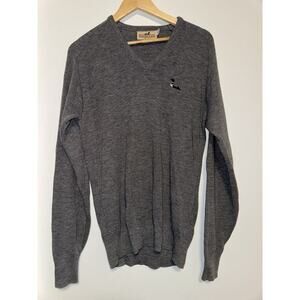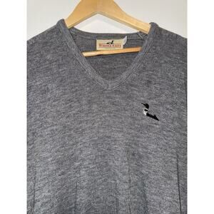 Winona Knits V-Neck Sweater Gray Embroidered Duck Vintage Made USA Mens XL Tall