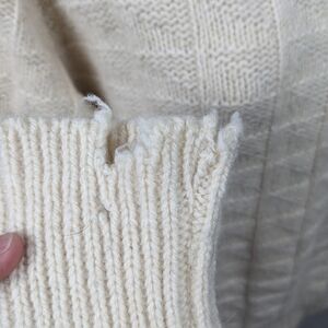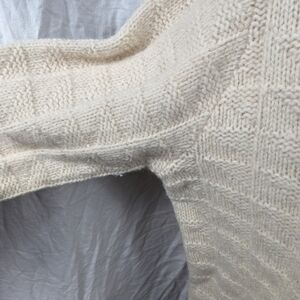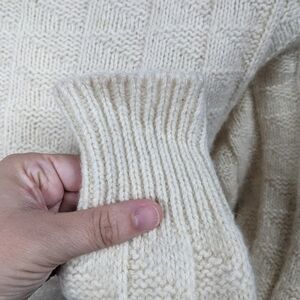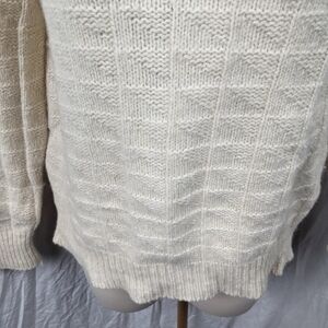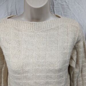 This sweater is in gently used condition. Experience warmth and style with this elegant cream knit sweater. Perfect for layering, it adds a touch of sophistication to any outfit.