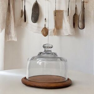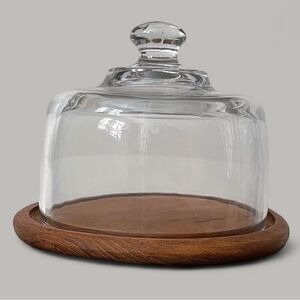 Round, Genuine Teak Wood Base with Clear Glass Cheese Dome Cloche