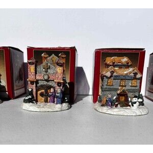 Complete Windsor Collection Lighted Christmas Village Set of 5, each house in its original box. Perfect for collectors or as classic Christmas décor!