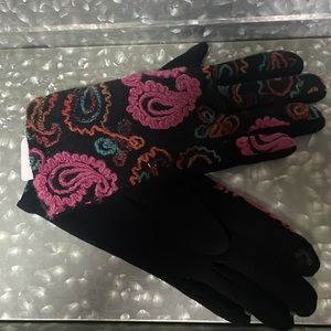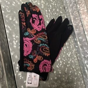 Brightly colored NWOT plaid scarf, NWT paisley mittens w/ touch pad & fuchsia boot liners in great condition